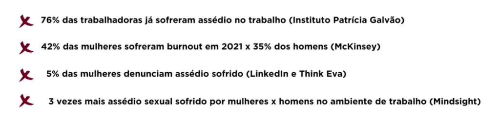 Na outra ponta, inspirando e impulsionando medidas contundentes como a lei em comento, pesquisas igualmente relevantes demonstram o quanto as mulheres são mais afetadas por condutas abusivas no ambiente de trabalho que caracterizam assédio sexual e moral.